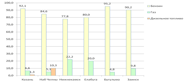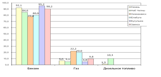 Рисунок 2.10. Предпочтения по видам топлива в разрезе городов, %