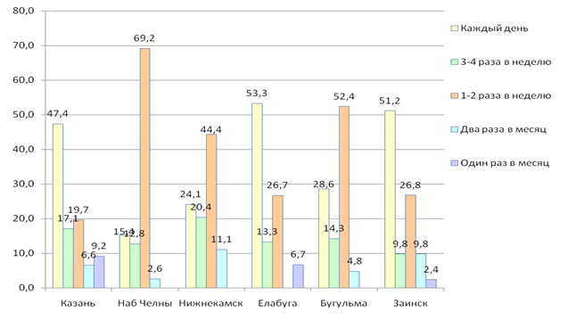 Рисунок 2.15. Частота потребления ГСМ в разрезе городов, %