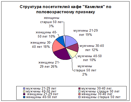 - методом наблюдения - выявление структуры посетителей кафе «Камелия»